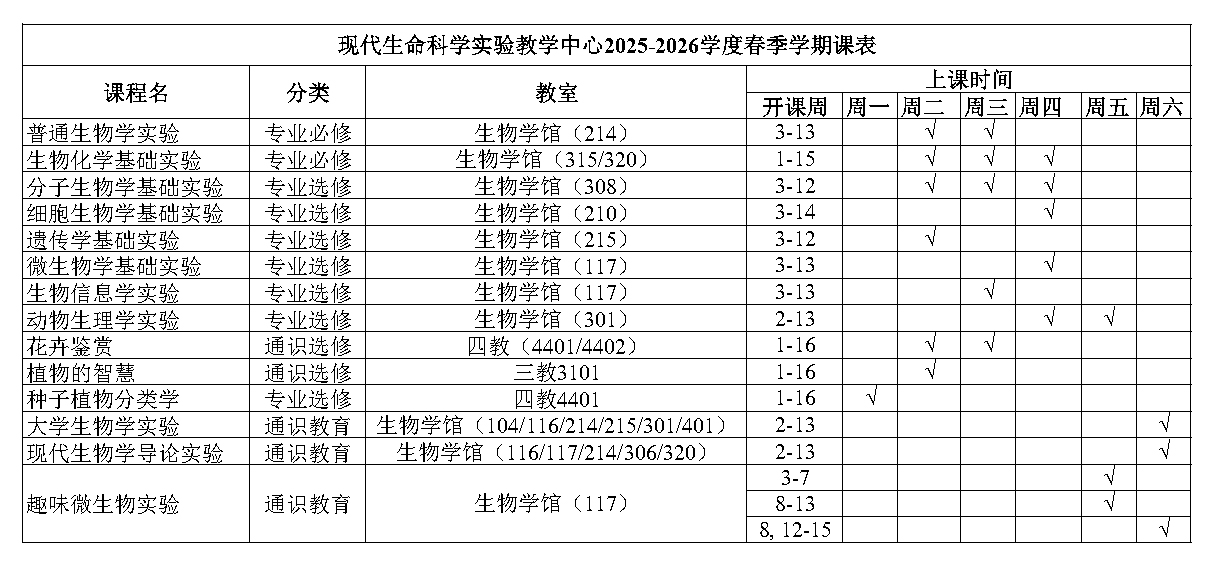 2025-2026学年春季学期生命科学实验